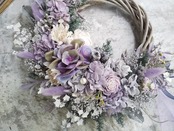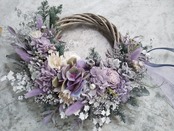 花材:<プリザーブドフラワー>アジサイ・カスミソウ・ヒムロスギ・アイビー実付きなど