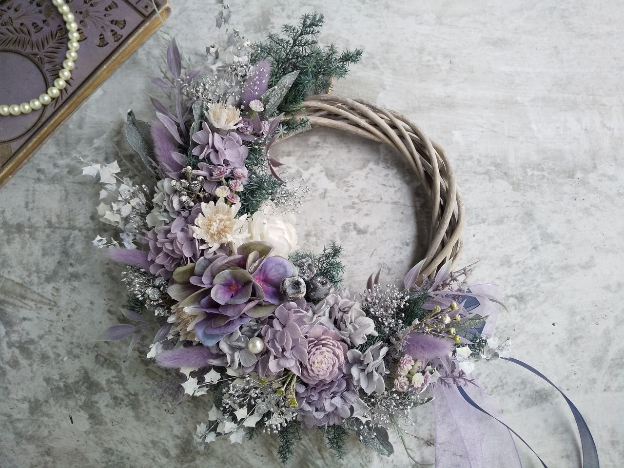 関連タグ リース 春 夏 秋 冬 植物 ボタニカル アンティーク シャビー シック 上品 かわいい ナチュラル プリザーブドフラワー ホワイト アンティークパープル グリーン シルバー パープル インテリア 模様替え 誕生日 記念日 花 贈り物 壁掛け オブジェ オーナメント プレゼント クリスマスリース クリスマスギフト ラッピング 玄関リース 新築祝い 結婚祝い お誕生日祝い 針葉樹 通年リース