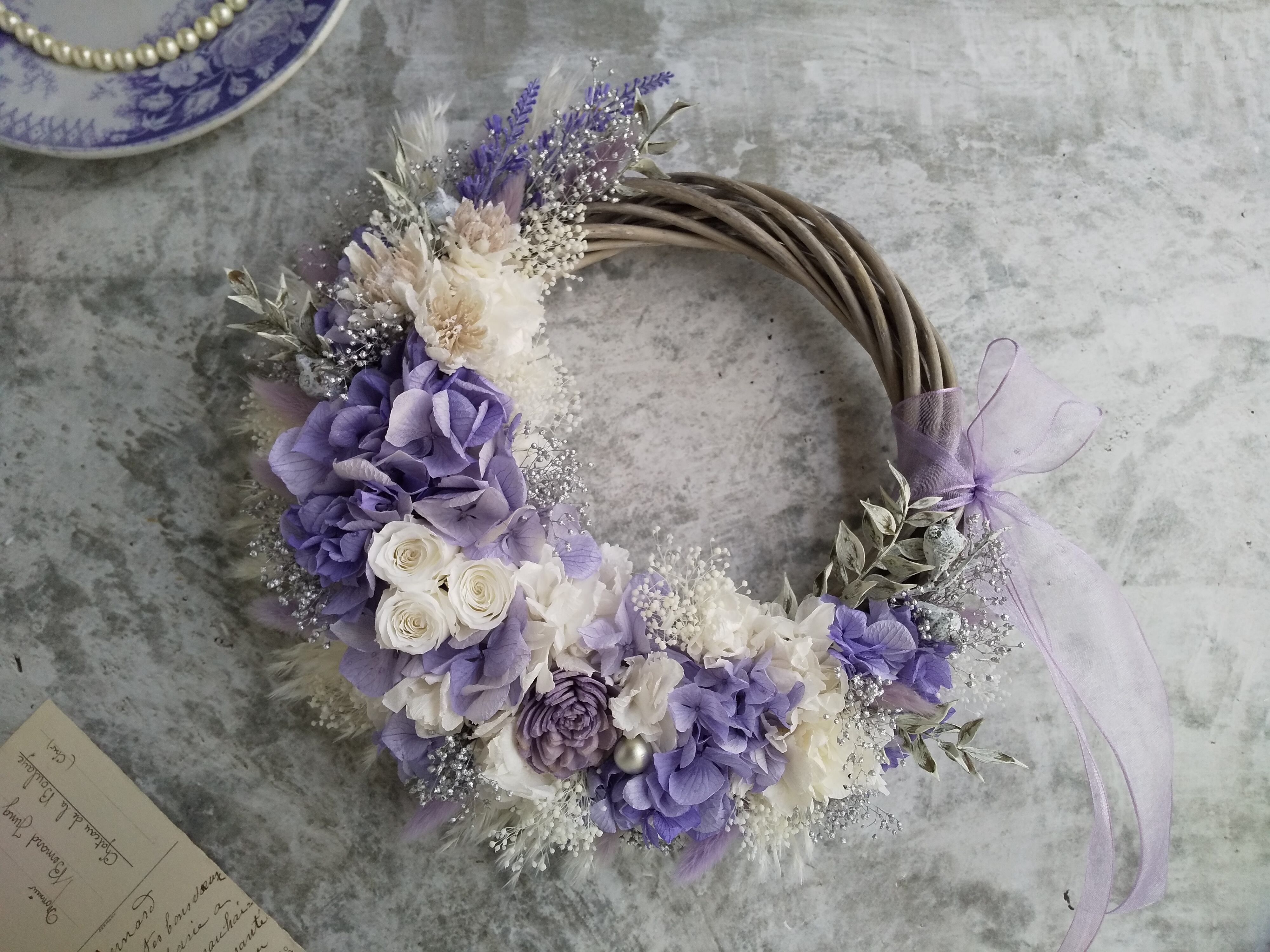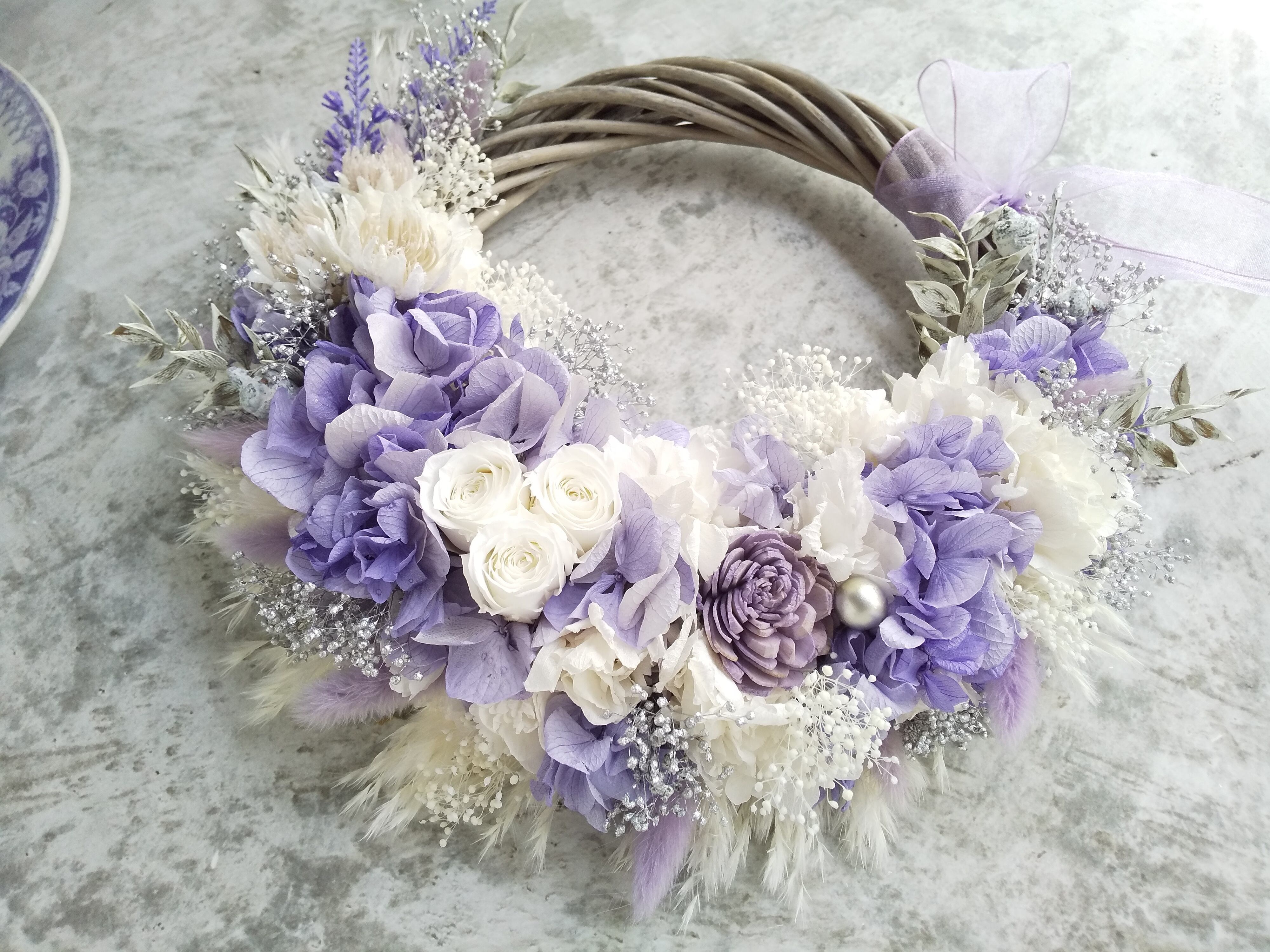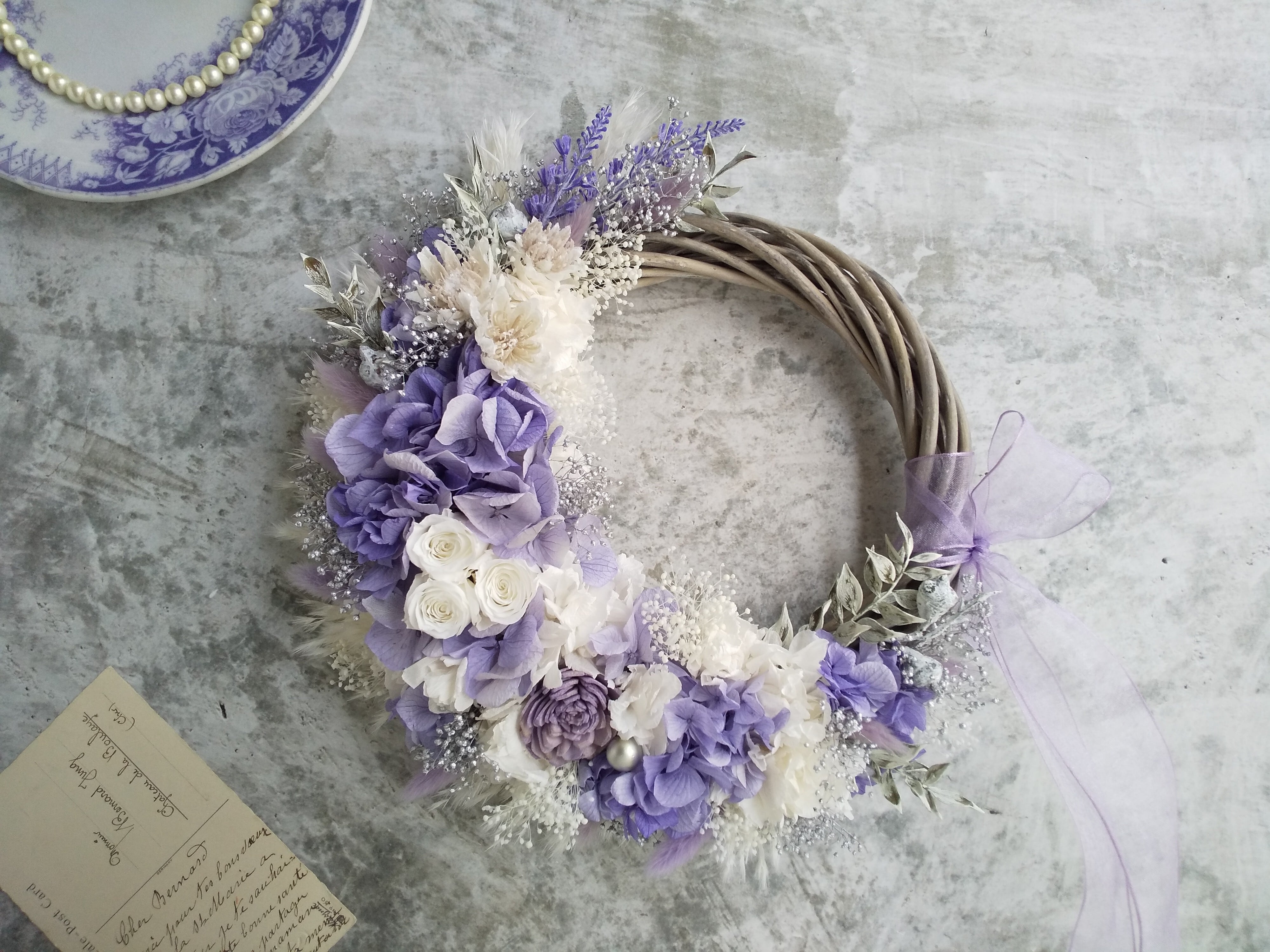 Lune Bonheur<Bel éclat>*春夏リース*通年リース*母の日*紫陽花*シャビーシック*母の日リース*ハーフリース*古希祝い*結婚祝い*新築祝い