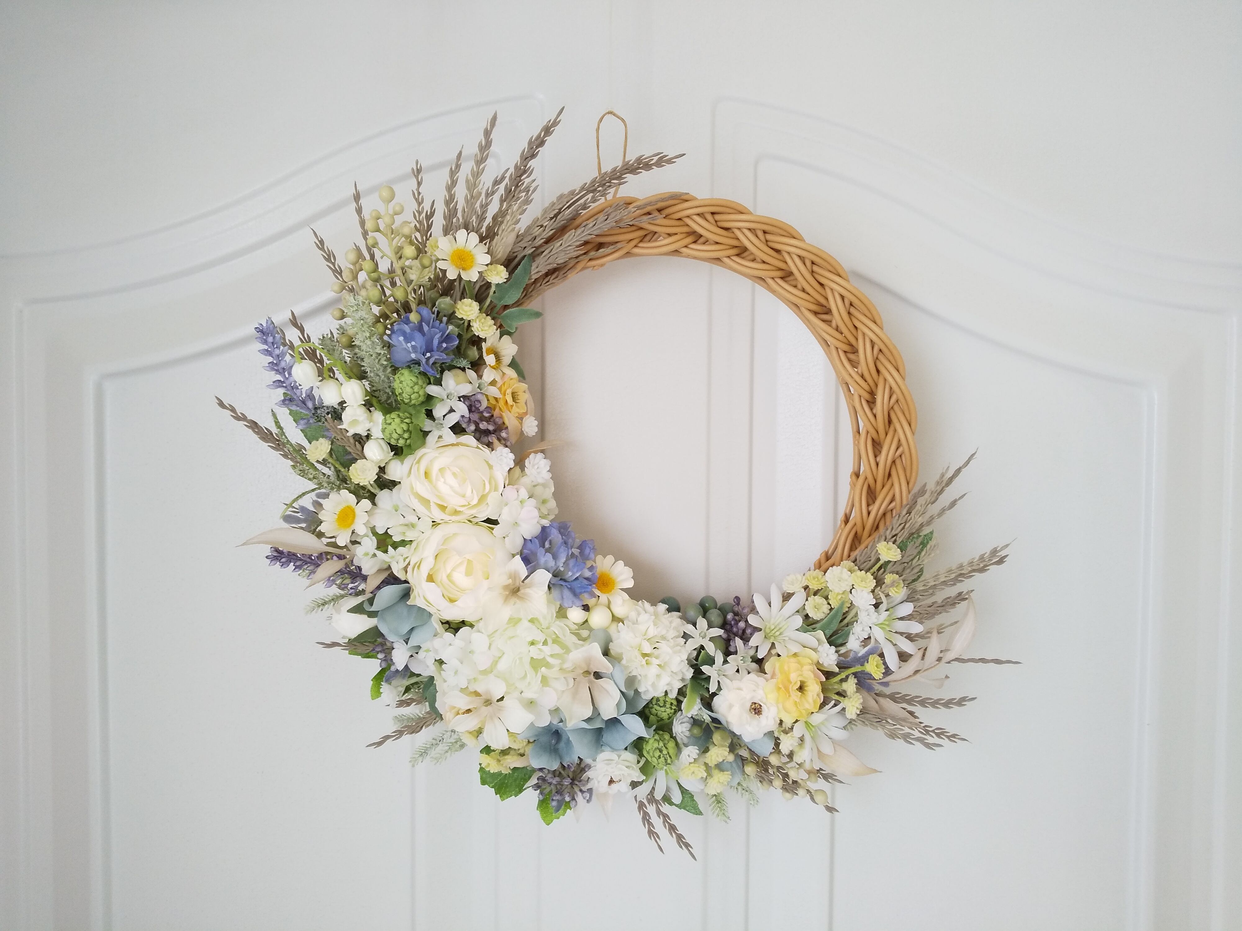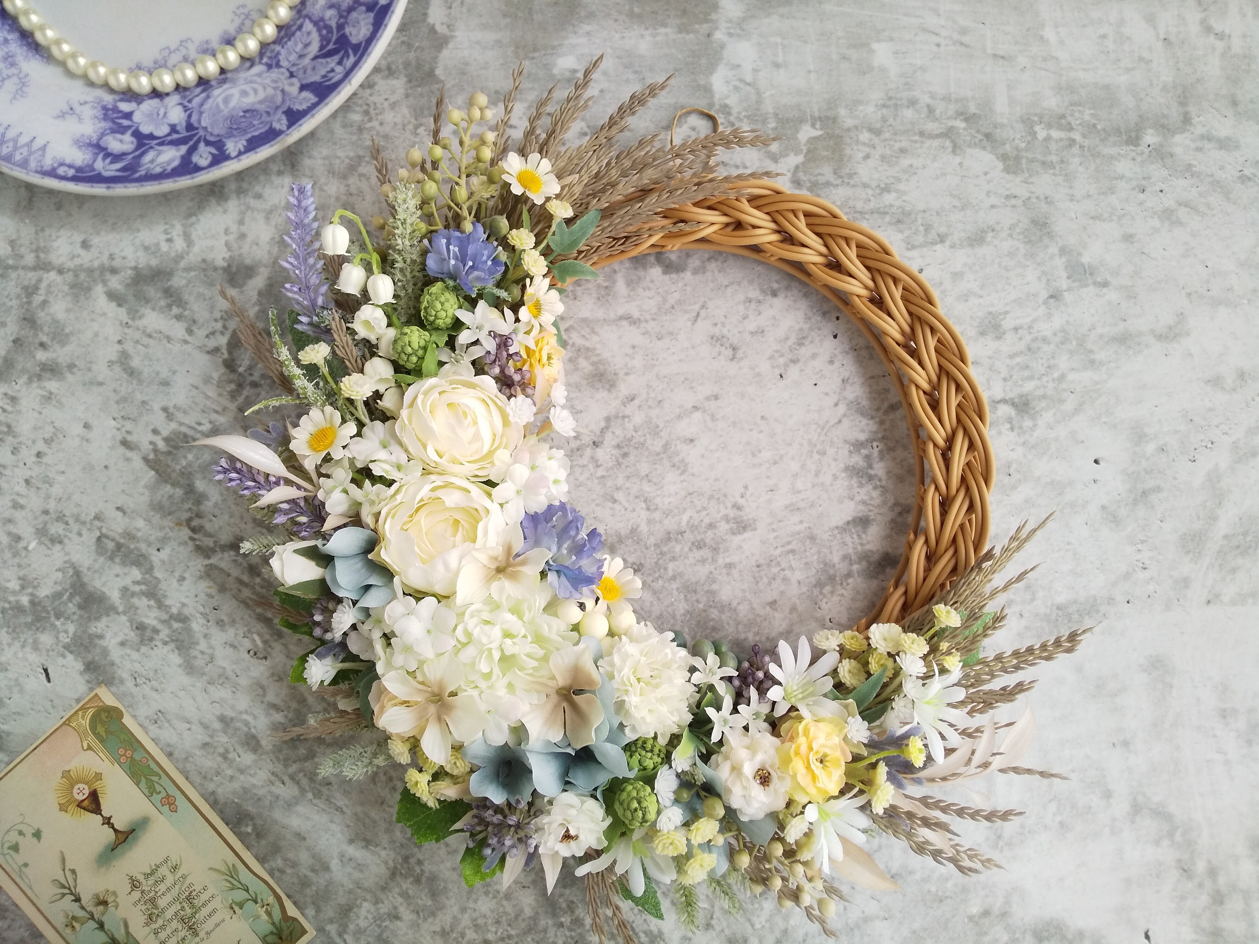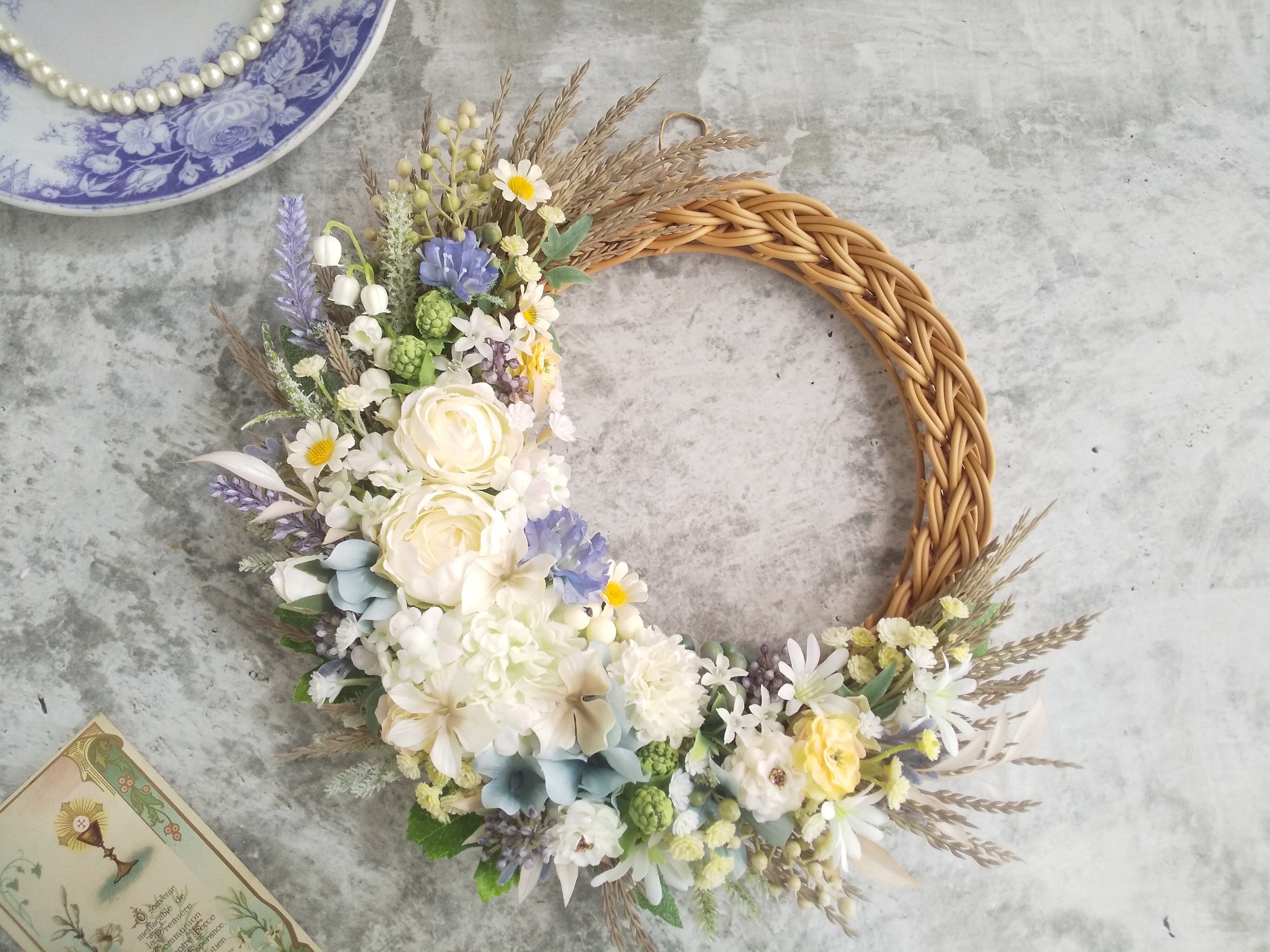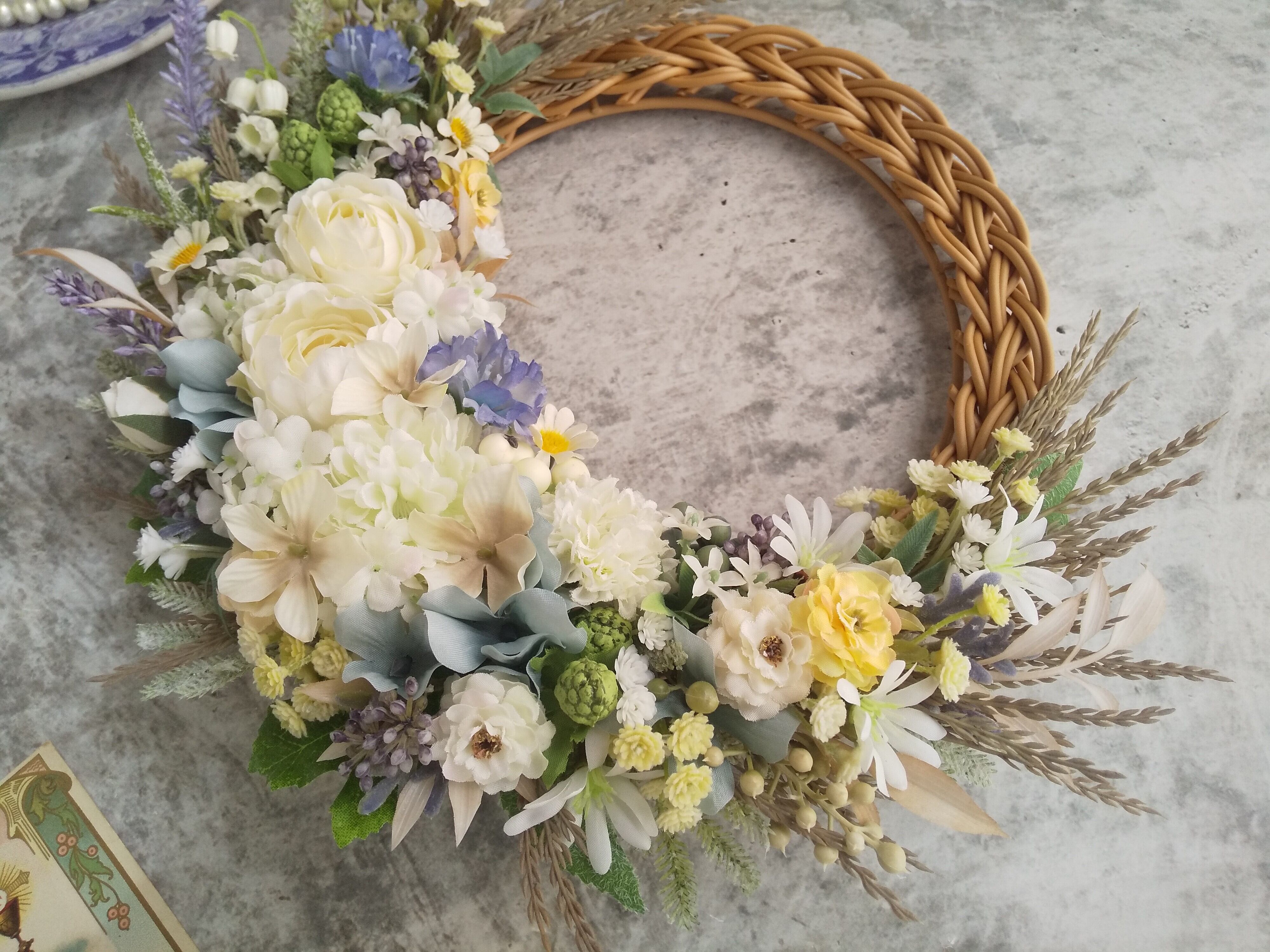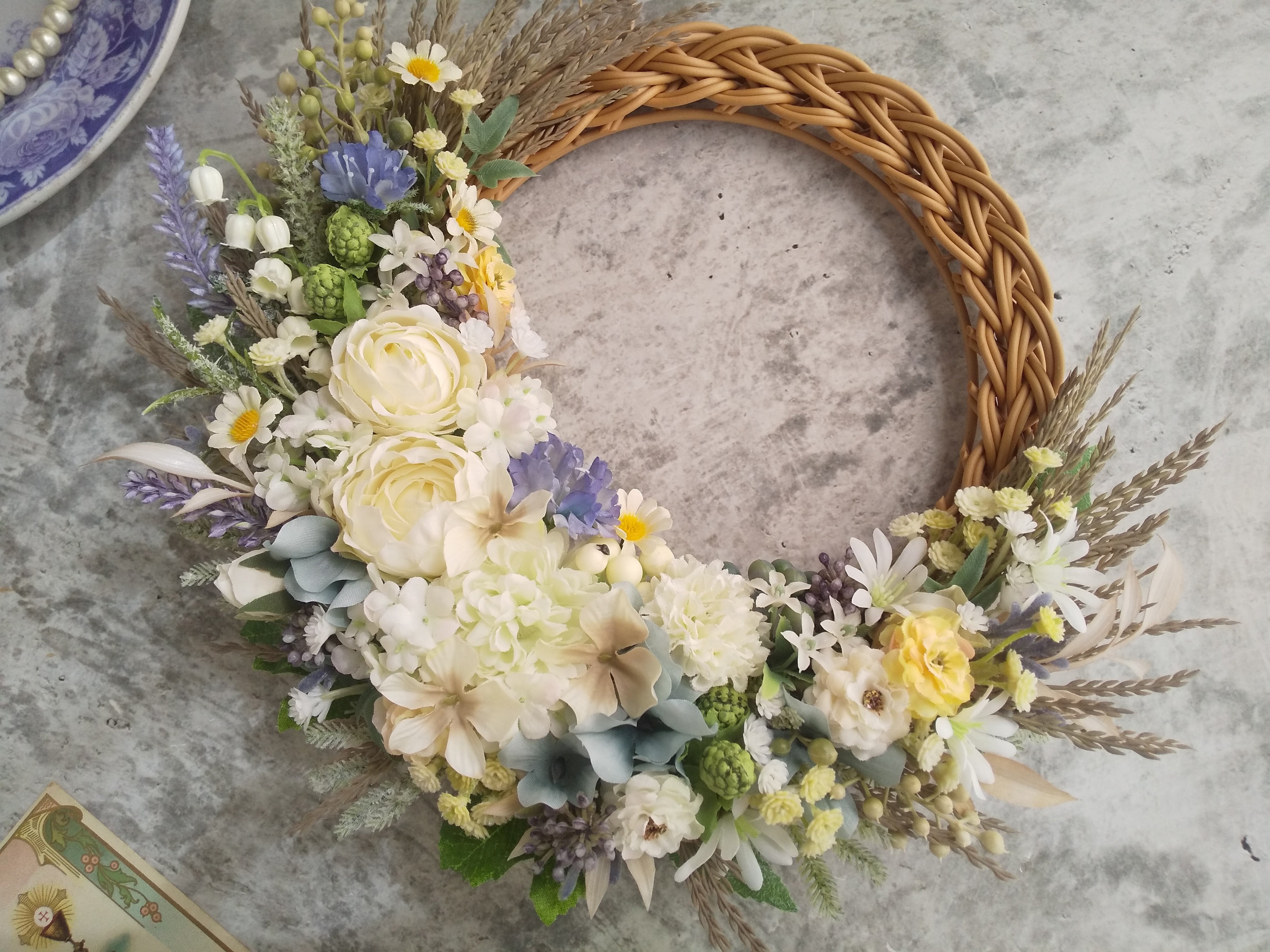 Lune Bonheur< couleur relaxante>*春*フラワーリース*玄関リース*母の日リース*母の日*造花*アーティフィシャルフラワー*ハーフリース結婚祝い*玄関*通年リース