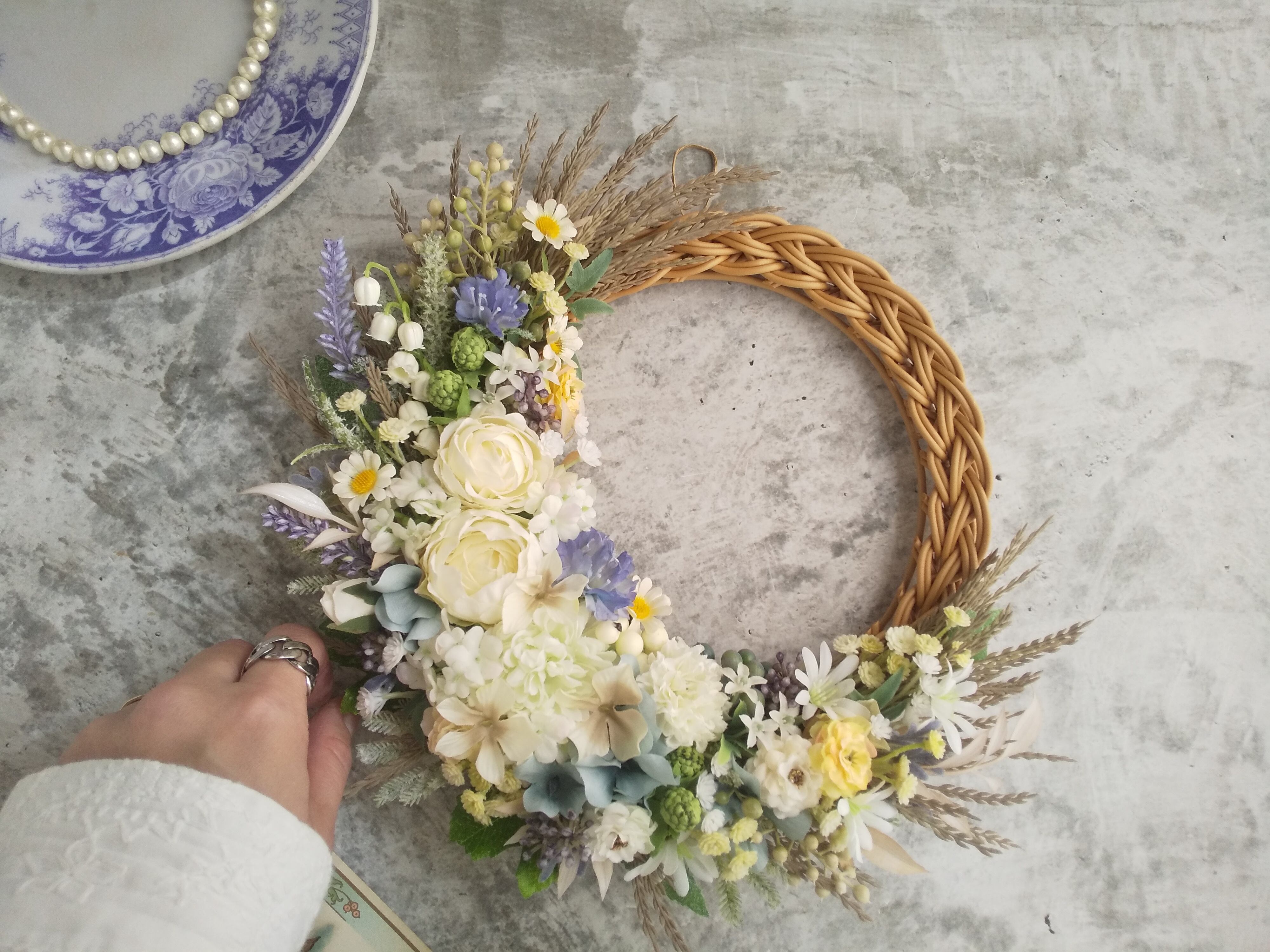 少女の頃を思い出すような三つ編みリースが印象的で、お花と共にナチュラルで心地良い空間にしっくりと。