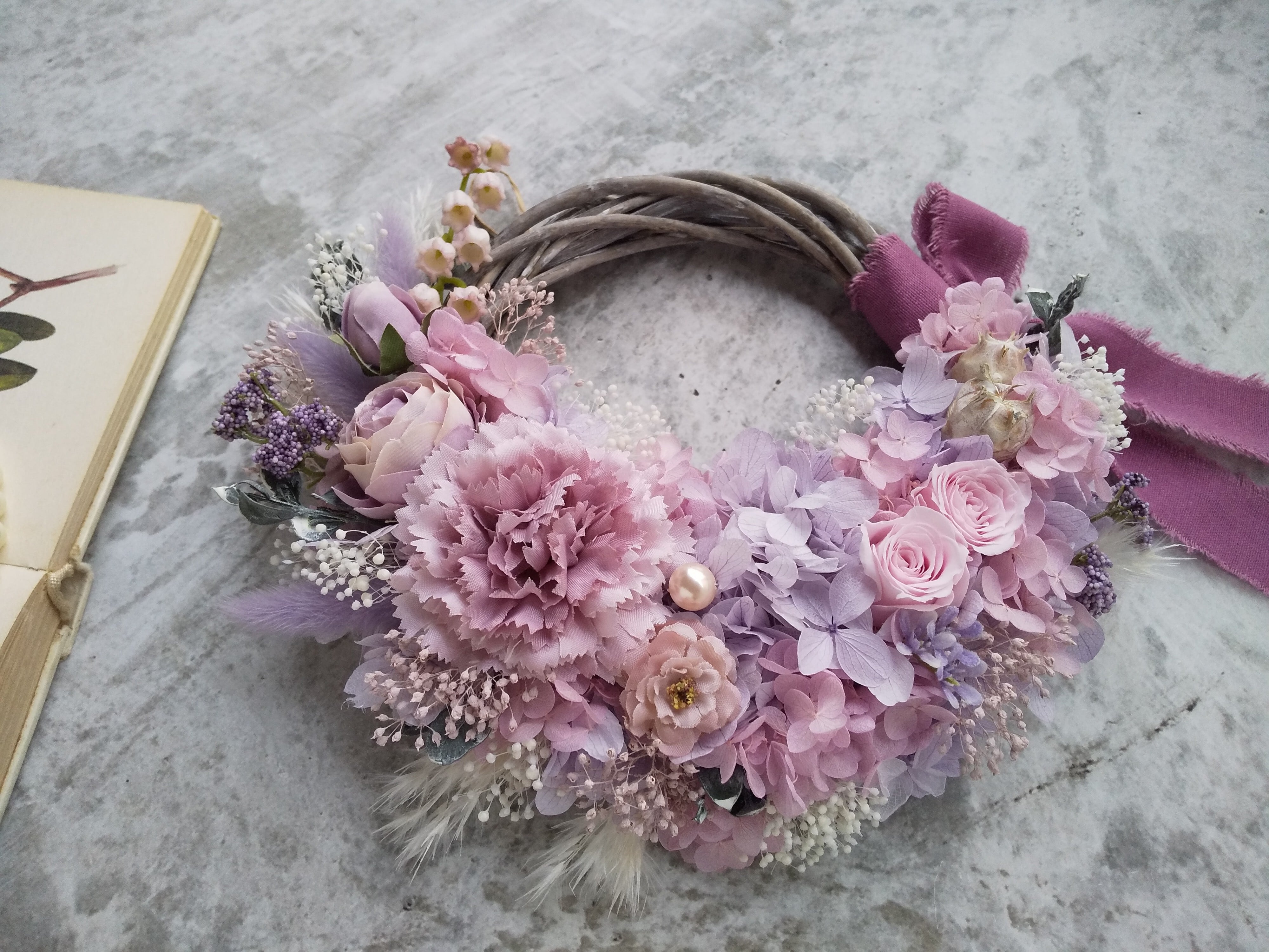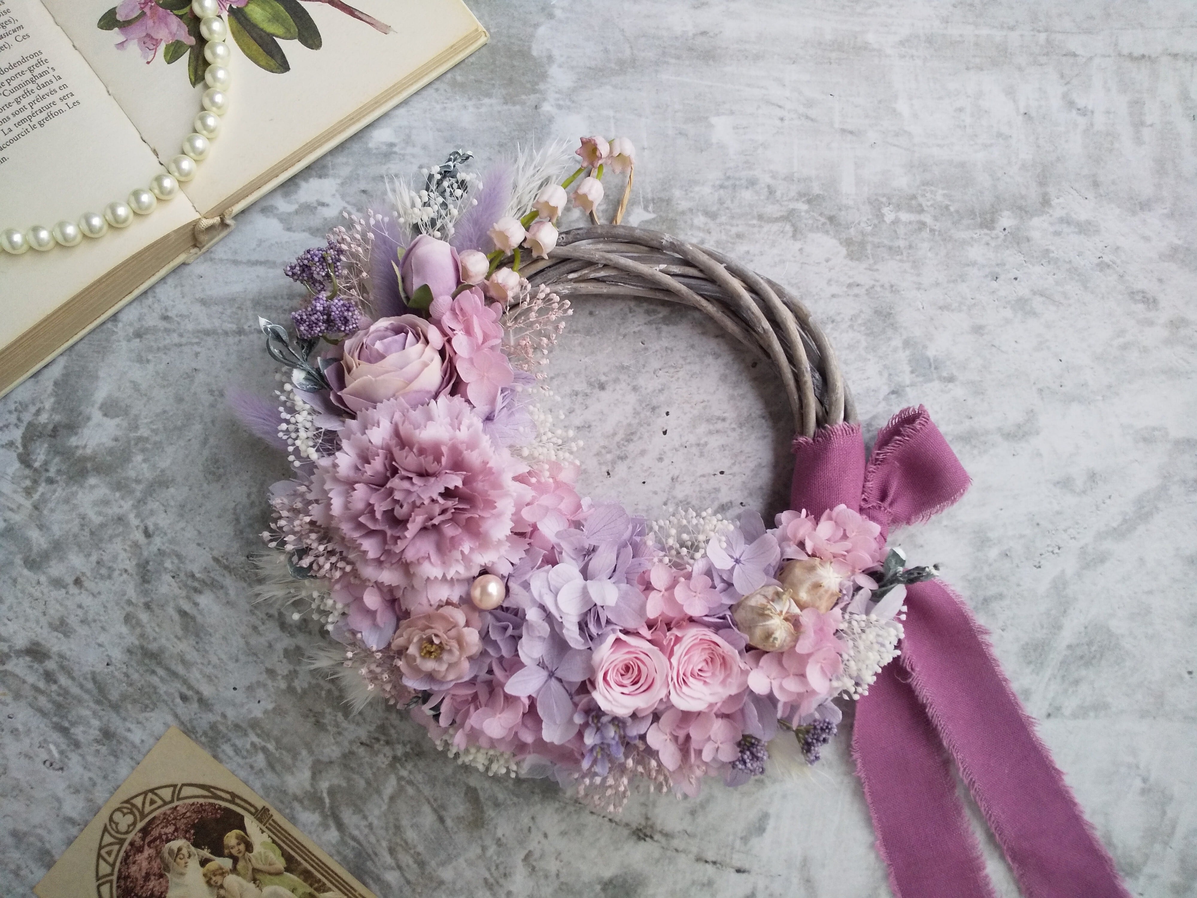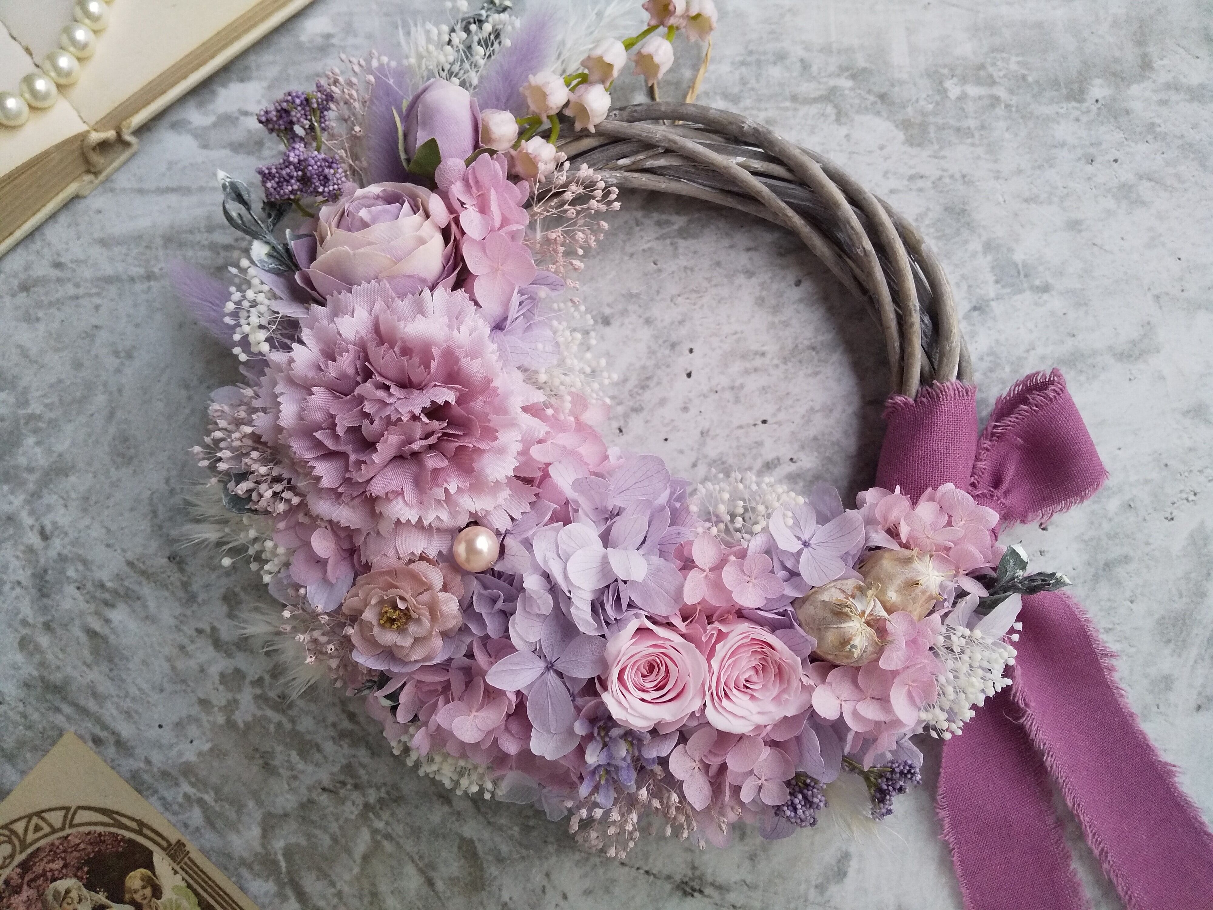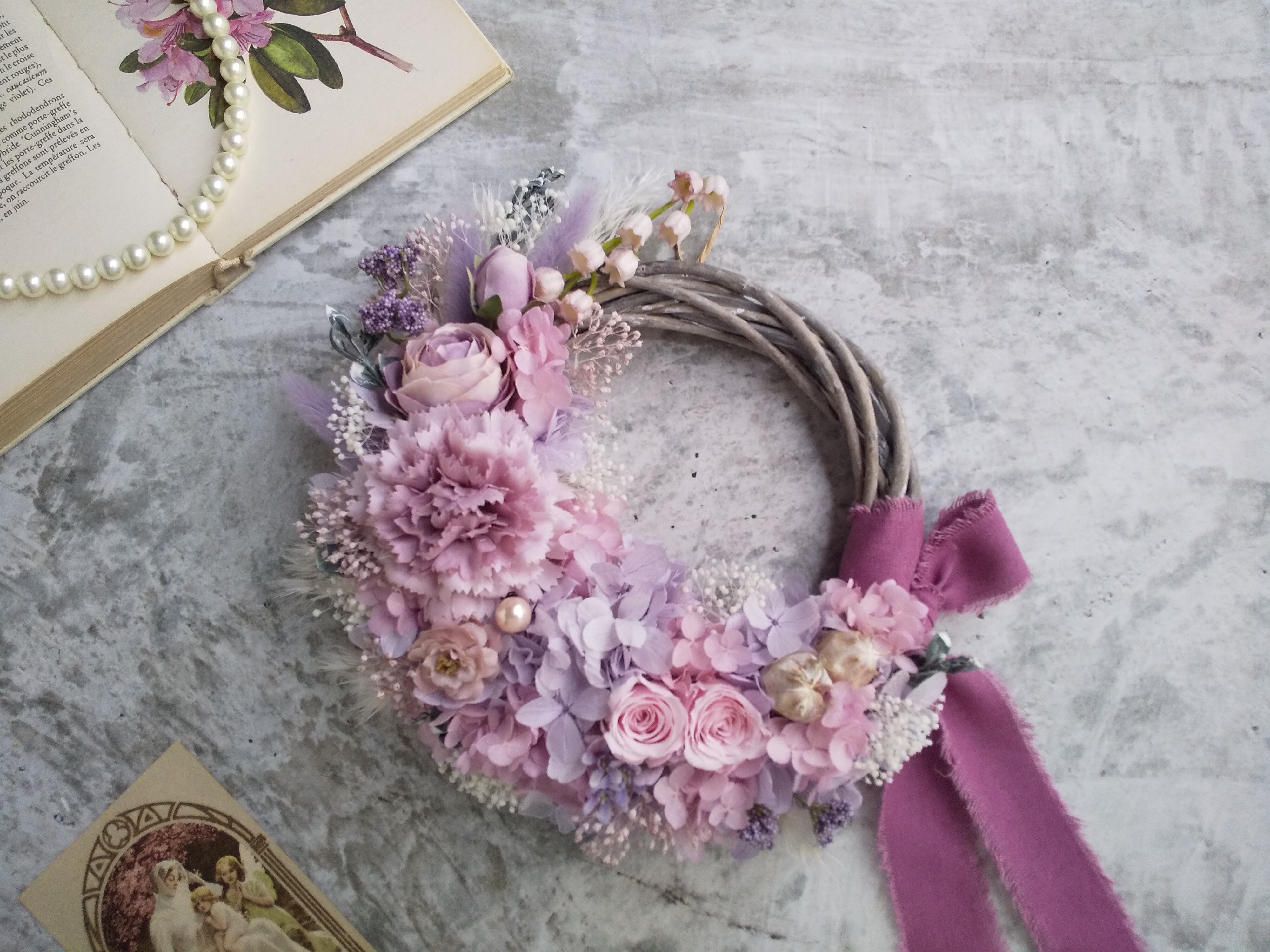 Lune Bonheur<Mon petit ange>*春リース*リース*フラワーリース*ハーフリース春*母の日リース*母の日*結婚祝い*プリザーブドフラワー*母の日フラワー